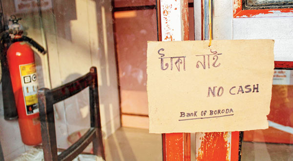 ক’দিন ধরেই সাত সকাল থেকে ব্যাঙ্ক, এটিএমের সামনে লম্বা লাইন পড়ছে। আর সেই লাইনের আড়ালে চলে যাচ্ছে রাস্তার পাশের সারি সারি দোকান। এমনিতেই দোকানের সামনে মোটরবাইক বা সাইকেল রাখলে কিছু ব্যবসায়ীর মেজাজ চড়ে যায়। কিন্তু টাকা তুলতে আসা লোকেদের তো আর সেই মেজাজ দেখিয়ে সরানো যায় না! ফলে দিনভর বেচাকেনা মার খাচ্ছে। কিন্তু লাইনও শেষ হচ্ছে না। সব দেখে ব্যবসায়ীদের হা-হুতাশ, ‘‘দোকানের মালপত্র লাইনের আড়ালে চলে যাচ্ছে। ক্রেতারা দেখতে পারছেন না। কবে যে লাইন শেষ হবে!’’