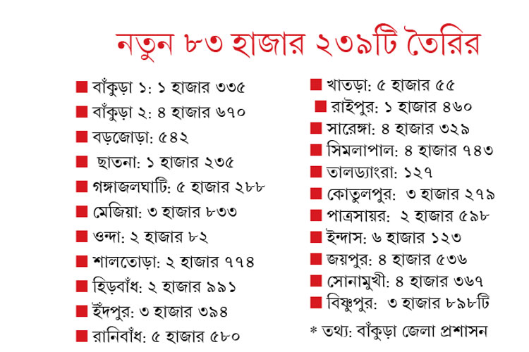 ‘নির্মল জেলা’ বাঁকুড়ায় নতুন করে শৌচালয় নির্মাণের কাজ শুরু হতে চলেছে। মঙ্গলবার বাঁকুড়ার জেলাশাসক উমাশঙ্কর এস একটি সাংবাদিক বৈঠকে জানান, ‘নির্মল বাংলা’ প্রকল্পে জেলা জুড়ে নতুন করে ৮৩ হাজার ২৩৯টি শৌচালয় নির্মাণ হবে। তার জন্য অর্থবরাদ্দ করা হয়েছে। শীঘ্রই কাজ শুরু হবে।