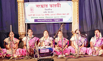 না ট্যকার দ্বিজেন্দ্রলাল রায়ের ‘ধনধান্য পুষ্পভরা’ কিংবা অতুলকৃষ্ণ মিত্রের লেখা ‘আমার সাধ না মিটিল, আশা না পুরিল সকলই ফুরায়ে যায় মা...’ গানগুলি কার না চেনা! আপাতদৃষ্টিতে দেশাত্মবোধক, ভক্তিগীতি হিসেবে পরিচিত হলেও গানগুলির অন্য ইতিহাসও রয়েছে। তা হল, বাংলা নাটকের জন্যই গানগুলি প্রথম ব্যবহার হয়েছিল। ১৮৮১ সালে অতুলকৃষ্ণ মিত্র গানটি লেখেন আলোড়ন ফেলা নাটক ‘মাধবী কঙ্কন’-এর জন্য। ১৯০৯ সালে ‘সাজাহান’ নাটকের জন্য ‘ধনধান্য পুষ্পভরা’ গানটি লেখেন কবি, সুরকার গীতিকার দ্বিজেন্দ্রলাল। নাটকে গানের সমৃদ্ধ ইতিহাসের শুরুটা অবশ্য অনেক আগে। গবেষকদের অনেকের মতে, বাংলা নাটকে প্রথম গানের ব্যবহার করেন রুশদেশীয় নাট্যপ্রেমী লেবেদেফ। সালটা ১৭৭৫-র ২৭ নভেম্বর। ইংরেজি ‘দ্য ডিসগাইস’য়ের বাংলা রূপান্তর ‘কাল্পনিক সংবদল’ নাটকে। গানের কলি ছিল, ‘গুণ সাগর নাগর রায় নগর দেখিয়া যায়...’। ‘বিদ্যাসুন্দর’ নাটকের জন্য অবশ্য নিজেই গান লেখেন ভারতচন্দ্র। সালটা ১৮৩৫। এর পর মধুসূদন দত্ত, বঙ্কিমচন্দ্র চট্টোপাধ্যায়, গিরিশচন্দ্র ঘোষ, ক্ষীরোদপ্রসাদ বিদ্যাবিনোদ, রবীন্দ্রনাথ থেকে নজরুল— নাটকের গান লেখার তালিকায় কে নেই! ‘‘জুড়াইতে চাই, কোথায় জুড়াই/ কোথা হতে আসি, কোথা ভেসে যাই”— ১৮৮৫ সালে গিরিশচন্দ্র ঘোষের লেখা ‘বুদ্ধচরিত’ নাটকের এই গানটি শ্রীরামকৃষ্ণের পছন্দ হয়েছিল। শিশিরকুমার ভাদু়ড়ি নাটককে পৌরাণিক, ঐতিহাসিক ঘেরাটোপ থেকে মুক্ত করতে রবীন্দ্রনাথের দ্বারস্থ হন। ১৯২৫ সালে ‘চিরকুমার সভা’, ১৯২৭ সালে ‘শেষরক্ষা’ নাটক দু’টি অভিনয়ের অনুমতি দেন বিশ্বকবি। বাংলা নাটকের গানের সেই ইতিহাস তুলে ধরতে বাছাই আটটি গানের ডালি নিয়ে শনিবার অনুষ্ঠান হল সিউড়ির সাংস্কৃতিক চর্চা কেন্দ্র ‘সংস্কার ভারতী’। সিউড়ি রামকৃষ্ণ সভাগৃহে আয়োজিত অনুষ্ঠানটির সম্পাদনায় ছিলেন বিকাশ ভট্টাচার্য। উপস্থিত ছিলেন সংস্থার প্রাদেশিক সম্পাদক ভরত কুণ্ডু, সভানেত্রী তথা লোকসঙ্গীত শিল্পী স্বপ্না চক্রবর্তী। স্বপ্নাদেবী জানান, আদি থেকে বর্তমান, নাটকে গানের ব্যবহারের ইতিবৃত্ত তুলে ধরতেই ওই অনুষ্ঠান। শনিবারই দুটি নাটক মঞ্চস্থ হয়। নারায়ণ গঙ্গোপাধ্যায়ের ‘ভীমবধ’ এবং দ্বিজেন্দ্রলাল রায় অনুপ্রাণিত ‘চাণক্য-চন্দ্রগুপ্ত’।