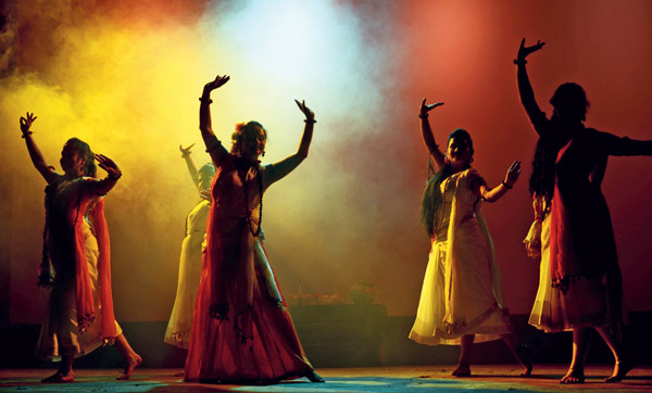 স্থানীয় ‘নৃত্যমন্দির’-এর ‘শকুন্তলা’ নৃত্যনাট্যের একটি দৃশ্য। রামপুরহাটের রক্তকরবী পুরমঞ্চে।—সব্যসাচী ইসলাম