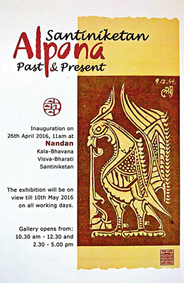 শান্তিনিকেতন আশ্রমের প্রথম যুগের আলপনার ইতিহাসে যাঁদের নাম এসে পড়ে, তাঁদের একজন আচার্য ক্ষিতিমোহন সেনের স্ত্রী কিরনবালা দেবী। গ্রাম বাংলার আলপনা তাঁর হাত ধরেই এই আশ্রমে প্রবেশ করে। ১৯২৪ সালে আশ্রমে আলপনার জন্য রবীন্দ্রনাথ আনেন সুকুমারী দেবীকে। পরবর্তী কালে শান্তিনিকেতন এবং শ্রীনিকেতনের সৌন্দর্য রক্ষার গুরু দায়িত্ব যাঁর হাতে ছিল, তিনি নন্দলাল বসু। তাঁর উদ্যোগে আশ্রমে শুরু হয় আলপনার নব্য এক যুগ। আধুনিক সময়ে সেই ধারাটিকে চিনতে, শান্তিনিকেতনী আলপনার একটি প্রদর্শনীর আয়োজন করেছে কলাভবন। ‘শান্তিনিকেতনের আলপনা, অতীত এবং বর্তমান’ শীর্ষক ওই প্রদর্শনী শুরু হচ্ছে আজ মঙ্গলবার থেকে নন্দন আর্ট গ্যালারিতে। কলাভবনের কিউরেটর সুশোভন অধিকারী বলেন, ‘‘এমন উদ্যোগ আশ্রমে এই প্রথম। তাতে সেই সময়কার গ্রাম বাংলার আলপনার ধারা আশ্রমে কেমন করে এসেছে জানা যাবে। ঠিক তেমনই কালক্রমে শিল্পটির নিজস্বতা গড়ে ওঠার বিষয়টিও জানা যাবে।’’ প্রদর্শনীতে স্থান পেয়েছে কলাভবনের সংগ্রহে থাকা বিশিষ্টদের আলপনা, আলোকচিত্র, স্কেচের কপি। কিরনবালা সেন, সুকুমারী দেবী, নন্দলাল বসু, গৌরী ভঞ্জ, যমুনা সেনদের পাশাপাশি শিশির ঘোষ, ক্ষমা ঘোষ, ননী গোপাল ঘোষ এবং বর্তমানের সুধীরঞ্জন মুখোপাধ্যায়ের কাজ থাকছে ওই প্রদর্শনীতে। বিশেষ ভাবে প্রদর্শীত হচ্ছে শিক্ষাসত্রের চিত্রকলার অধ্যাপক সুধীরঞ্জনবাবুর কাজ। তিনি নতুন করে আশ্রমের আলপনার ধারাটিকে নিয়ে কাজ করছেন। তাঁর নকশায় ফুল, লতা, পাতার সঙ্গে কবির গানও জায়গা করে নিয়েছে।