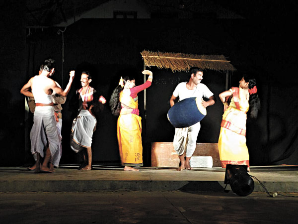 লাভপুরে সংস্কৃতি বাহিনীর নাটক ‘বোগলো বায়েন’। —নিজস্ব চিত্র।