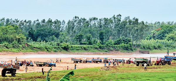 সকাল দশটাতেই বৈধরা ব্যারাজ থেকে ৫০০ মিটার দূরত্বে দেখা গেল প্রায় ১০০টি ট্রাক্টরে বালি বোঝাই করছে। রাস্তার উপর দাঁড়িয়ে বালি ভর্তি পাঁচ ছটি দশ চাকা লরি ও তিন চারটি ট্রাক্টর। স্থানীয় হরিদাসপুর পঞ্চায়েত থেকে লরি ও ট্রাক্টর থেকে টোল আদায় কেন্দ্রে টোল দিয়ে বালি বোঝাই এই গাড়িগুলিই বেরিয়ে যায়। টোল আদায় কেন্দ্র পেরিয়ে যেতেই দেখা গেল, লক্ষ্মী নারায়ণপুর গ্রাম যাওয়ার রাস্তার ধারে জায়গায় জায়গায় চার ফুট তিন ফুট উঁচু করে বালি জমা করা আছে। খোঁজ নিয়ে জানা গেল, বর্ষাকাল বলে এলাকার বালি মাফিয়ারা নদী থেকে বালি তুলে মজুত করে রেখেছে। দাম চড়লে, পরে ওই বালি পাচার হবে।