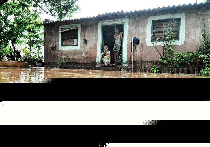 বিষ্ণুপুরের প্রগতিপল্লিতে নিকাশির অভাবে ফি বছরের মতো এ বারও জল জমল।