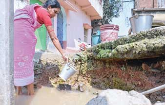 ৮ নম্বর ওয়ার্ডে রাস্তার ধারে এভাবেই জল নিতে হয় বাসিন্দাদের।
