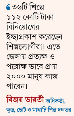 জেলা শিল্প দফতর সূত্রে জানা গিয়েছে, এলপিজি সিলিন্ডার তৈরি, ছাইয়ের ইট, বোতলবন্দি পানীয় জল, পানীয় জলের বোতল তৈরি, মেডিক্যাল অক্সিজেন, চুনাপাথর গুঁড়ো, ময়দা, গ্র্যানাইট কাটিং এবং পালিশ, রাইস মিল, হোটেল-রেস্তোরাঁ, পোল্ট্রি ফিড, স্টোনচিপস-সহ মোট ৩৬ ধরনের শিল্প জেলায় আসার প্রস্তাব এসেছে। জেলা শিল্প দফতরের প্রবন্ধক প্রণবকুমার নস্কর বলেন, ‘‘মেডিক্যাল অক্সিজেন তৈরি, এলপিজি সিলিন্ডার তৈরি-সহ ফুড সেক্টরে কয়েকটি নতুন শিল্প আসতে চলেছে। এটা অবশ্যই সিনার্জির প্রাপ্তি। সরকারও বিনিয়োগকারীদের পাশে থাকবে। বিভিন্ন ধরনের সুবিধা তাঁদের দেওয়া হবে।’’