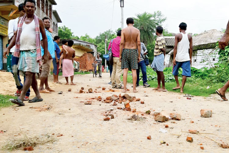 হাতিয়া গ্রামে ইটবৃষ্টি। —নিজস্ব চিত্র