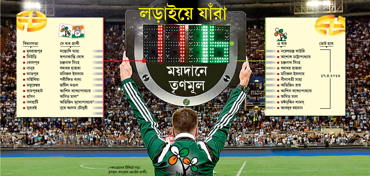 দু’-দু’বার তিনি ভোটে লড়েছিলে খোদ দলের জেলা পর্যবেক্ষকের বিরুদ্ধে। রাজনীতিতে তেমন অপরিচিত মুখ না হলেও জেলায় তাঁর আমদানি ‘নতুন’ই। ফিরহাদ হাকিমের বিরুদ্ধে লড়ে হারা ফরওয়ার্ড ব্লক প্রার্থী মঈনউদ্দিন শামসকেই এ বার প্রার্থী করা হয়েছে নলহাটিতে। তাঁর আরও একটি পরিচয় আছে ফব ছেড়ে দিদির হাত ধরা মঈনউদ্দিনের। তিনি ওই এলাকার প্রাক্তন বিধায়ক তথা বামফ্রন্ট আমলে খাদ্যমন্ত্রী কলিমউদ্দিন শামসের পুত্র। ক্রমে ফিরহাদের কাছের লোক হয়ে উঠেছেন। এলাকায় থাকা ‘সংখ্যালঘু ভোটব্যাঙ্ক’ তিনি জয় করতে পারবেন, এমনটাই শাসকদলের আশা। যদিও একেই ফব-র শক্তঘাঁটি, তার উপরে বাম-কংগ্রেস জোট হলে তৃণমূলের সেই আশা পূরণ হতে চাপ আছে বলেই মনে করছেন রাজনৈতিক বিশ্লেষকেরা।