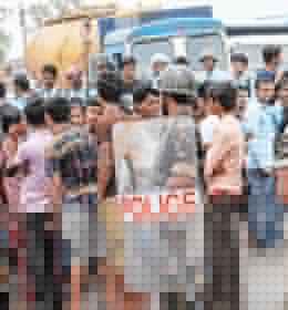দুর্ঘটনার পরে এলাকার বাসিন্দাদের বিক্ষোভ।— নিজস্ব চিত্র।