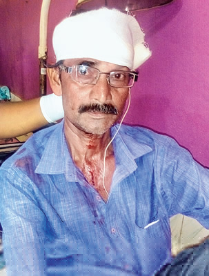 পুঞ্চায় আক্রান্ত সিপিএম কর্মী বাচ্চু চক্রবর্তী। —নিজস্ব চিত্র