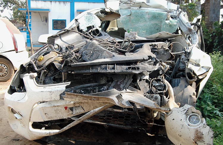 দুর্ঘটনাগ্রস্ত: এমনই হাল হয়েছে গাড়িটির। নিজস্ব চিত্র