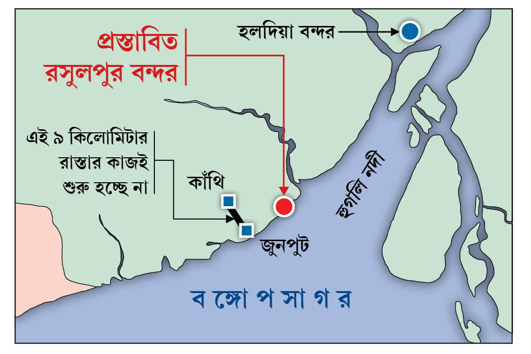 এই বন্দর গড়তে আগ্রহী মেকা গোষ্ঠীর শাখা সংস্থা আম্মালাইন্সের দাবি, এই প্রকল্পের জন্য জুনপুট থেকে কাঁথি পর্যন্ত ৯ কিলোমিটার রাস্তা চওড়া করা জরুরি। কারণ, বন্দর হলে সেখানে যাবতীয় পণ্য যাবে ওই রাস্তা ধরে। কিন্তু এখন এই রাস্তা মাত্র দেড় লেনের। কমপক্ষে যা তিন লেনের না-হলে, পণ্য পরিবহণ অসম্ভব। সংশ্লিষ্ট সূত্রে খবর, সরকার আগেই বহু জমি অধিগ্রহণ করে রাখায় ওই রাস্তা চওড়া করতে নতুন করে জমি নেওয়ার প্রয়োজন তেমন নেই। কিন্তু দরকার অধিগৃহীত ওই জমির মানচিত্র। না হলে রাস্তার কাজ এগোনো যাবে না। সংস্থার অভিযোগ, কেন্দ্র এবং নিজেদের টাকায় রাস্তা চওড়া করতে তৈরি তারা। কিন্তু তা আটকে আছে মানচিত্র হাতে না পাওয়ার কারণেই।