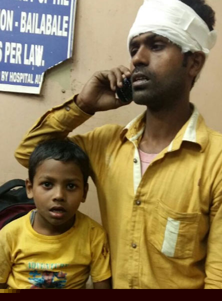 আহত লালবাবু শেখ ও তাঁর ছেলে রিয়াজ। নিজস্ব চিত্র।