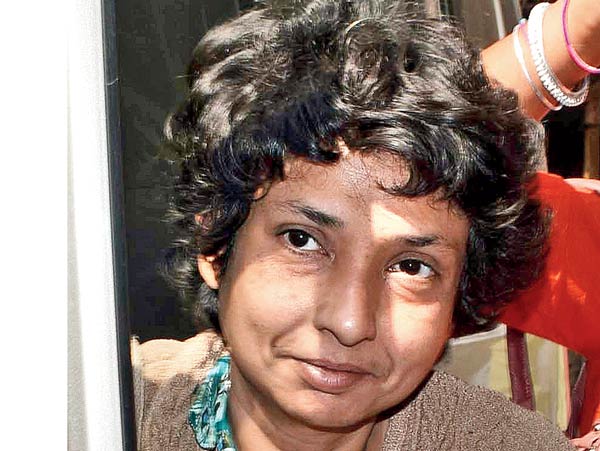 বারুইপুর আদালতে ধৃত নকশাল নেত্রী শর্মিষ্ঠা চৌধুরী। ছবি: শশাঙ্ক মণ্ডল।