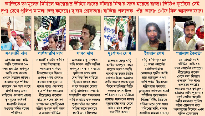 সোমবার দুপুরের পরে কেটে গিয়েছে আরও দু’টি দিন। কিন্তু কান্দিতে এখনও মুখে মুখে ঘুরছে তৃণমূলের মিছিলে আগ্নেয়াস্ত্র উঁচিয়ে জনাকয়েক যুবকের সেই ‘আস্ফালন’ এর কথাই!