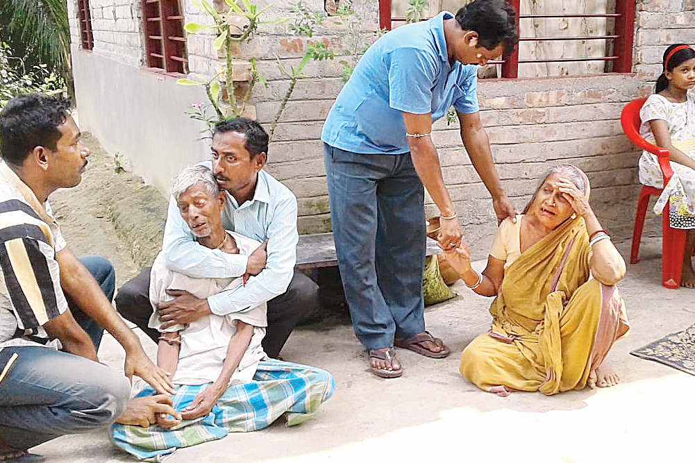 শোকার্ত: কমলাকান্ত সিংহের বাবা-মা। বুধবার। নিজস্ব চিত্র