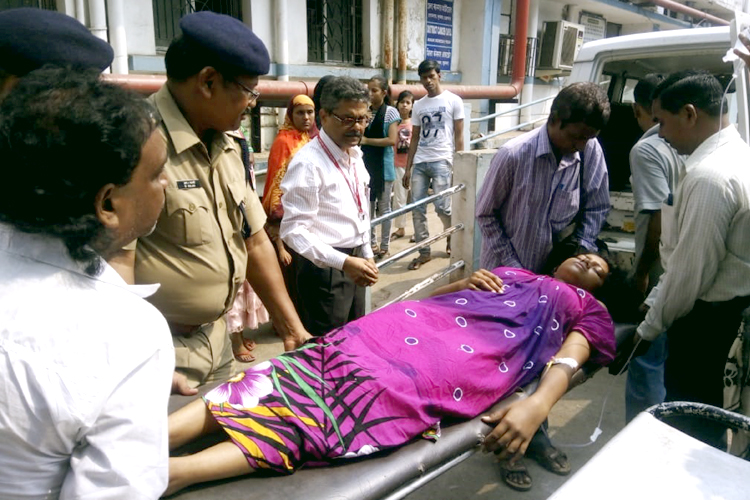 ভিড়ের চাপে জ্ঞান হারান গৌরী হেমব্রম: নিজস্ব চিত্র।