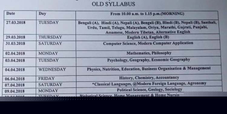 পুরনো সিলেবাসের নতুন সূচি