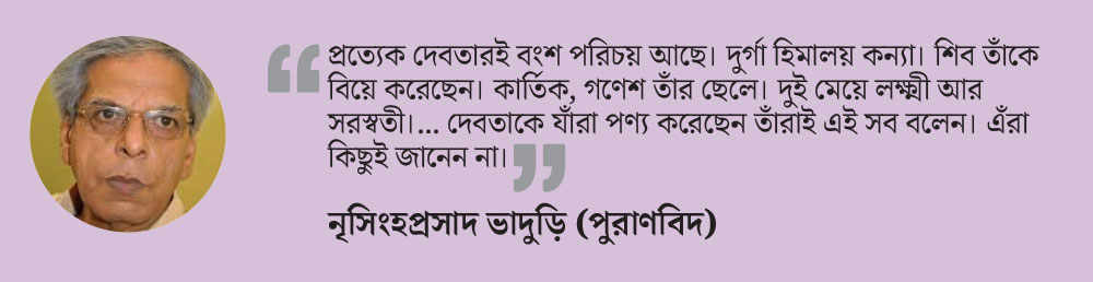 তৃণমূল দিলীপের মন্তব্যে দুর্গার অপমান দেখছে। আর বাংলার তিন পুরাণবিদ দিলীপের তোলা প্রশ্নকে নস্যাৎ করছেন এক কথায়।