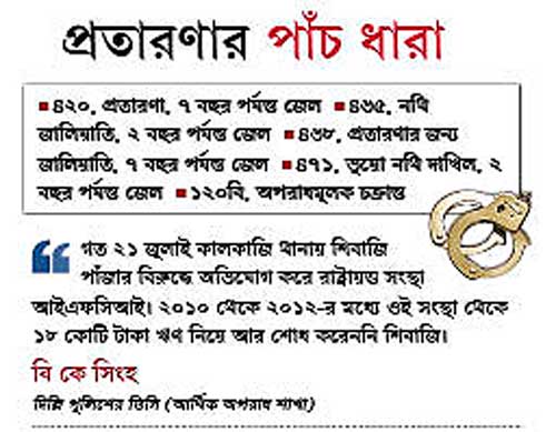 কিন্তু ঠিক সময়ে ঋণ শোধ না করার অভিযোগে শিবাজির বিরুদ্ধে তদন্তে নামে দিল্লি পুলিশের আর্থিক অপরাধ দমন শাখা। দেখা যায়, কম্পিউটার সরবরাহের বরাত আছে দাবি করে যে সব নথি শিবাজি জমা দিয়েছিলেন, তার সবই জাল! ওই ধরনের কোনও বরাত ছিল না শিবাজি বা তাঁর সংস্থার কাছে! এর পরেই তাঁর বিরুদ্ধে প্রতারণা এবং নথি জালের অভিযোগে মামলা দায়ের করা হয়। দিল্লি পুলিশের দাবি, শিবাজির সঙ্গে যোগাযোগের চেষ্টা করেও লাভ হয়নি। প্রায়শই মুখ্যমন্ত্রীর সঙ্গে দেখা গেলেও নাগালের বাইরেই থেকে গিয়েছিলেন এই ব্যবসায়ী। দিল্লি পুলিশের ডিসি বলেন, “ঋণ নেওয়ার সময় যে সব ঠিকানা দেওয়া হয়েছিল, সেখানেও শিবাজি পাঁজার খোঁজ মেলেনি। তাই তাঁর নামে লুক আউট নোটিস জারি করা হয়। কারও নামে লুক আউট নোটিস থাকলে, তিনি বিদেশে গেলে বা বিদেশ থেকে ফেরার সময় বিমানবন্দরেই ধরা পড়েন। শিবাজির ক্ষেত্রে তাই হয়েছে।”