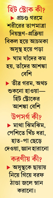 এর সঙ্গে বৃষ্টি হলে পরিস্থিতি উল্টে আরও খারাপ হচ্ছে উপকূল এলাকায়। আলিপুর হাওয়া অফিসের এক আবহবিদের কথায়, ‘‘বাতাসে জলীয় কণার পরিমাণ যদি ৬০ শতাংশ হয়, বৃষ্টির পরে তা বেড়ে হয় ৮০ শতাংশ। যার ফলে হাওয়া চলাচল একেবারে বন্ধ হয়ে যায়। অস্বস্তিও বাড়ে। প্রথমত, আর্দ্রতায় ঘাম দ্রুত শুকোয় না। ঘাম না শুকোলে শরীরের তাপ বেরোয় না। শরীরের ভিতরে তাপ বাড়তে থাকে। হৃৎপিণ্ড, শ্বাসযন্ত্র এমনকী, স্বাভাবিক বিপাক প্রক্রিয়াও ব্যাহত হয়। তার জেরে শরীর হাঁসফাঁস করতে থাকে। শরীরের তাপ খুব বেড়ে গেলে হৃৎপিণ্ড ও মস্তিষ্কের ক্রিয়া স্তব্ধ হয়ে মৃত্যুও হতে পারে।