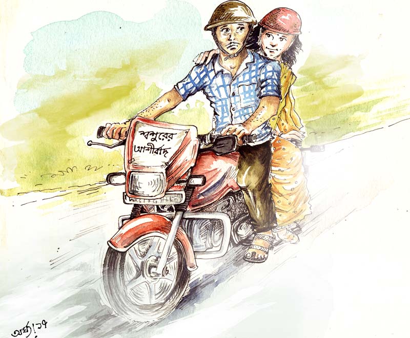 ‘কালীদা’ মুশকিল আসান করেননি। করেছিলেন সেই যুবকের শ্বশুরমশাই। হালফিলের মডেল। লাথি মারার দরকার নেই। বোতাম টিপলেই গর্জে ওঠে। লাল রঙের বাইক তো নয়, যেন বাঘের বাচ্চা। গাড়ি তো হল। হোয়াট নেক্সট?