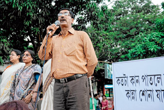 বিরুদ্ধে জনসভায়। বুধবার অ্যাকাডেমি অব ফাইন আর্টস চত্বরে।—নিজস্ব চিত্র