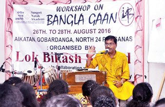বাংলা গানের কর্মশালা হয়ে গেল উত্তর ২৪ পরগনার গোবরডাঙায়। সম্প্রতি অনুষ্ঠানটি হয় গোবরডাঙার ঐকতান সভাগৃহে। পরিচালনায় ছিল গোবরডাঙা লোকবিকাশ সংসদ। সহযোগিতায় গোবরডাঙা পুরসভা। উপস্থিত ছিলেন নাট্যকর্মী আশিস চট্টোপাধ্যায়, সঙ্গীত শিল্পী মানসী ঘোষদস্তিদার, আয়োজক সংস্থার সভাপতি রীনা গিরি-সহ অনেকে। হাবরা, অশোকনগর, বনগাঁ, চাঁদপাড়া-সহ বিভিন্ন এলাকা থেকে প্রায় ৫০ জন এই কর্মশালায় যোগ দেন। প্রশিক্ষকদের মধ্যে ছিলেন সঙ্গীতের অধ্যাপিকা পাপড়ি চক্রবর্তী, জাতীয় পুরস্কারপ্রাপ্ত খোলবাদক হরেকৃষ্ণ হালদার, সঙ্গীত পরিচালক অশোক ভদ্র প্রমুখ। কর্মশালাটি পরিচালনা করেন লোকসঙ্গীত শিল্পী এবং গবেষক আশিস গিরি।