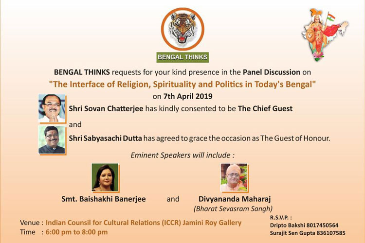 যে অনুষ্ঠানে এই তিন জনের যাওয়া নিয়ে জল্পনা তৈরি হচ্ছে, সেই অনুষ্ঠানটি আগামী ৭ এপ্রিল। ‘বেঙ্গল থিংকস’ নামের একটি সংস্থার উদ্যোগে এই আলোচনা সভার বিষয়, ‘দ্য ইন্টারফেস অব রিলিজিয়ন, স্পিরিচুয়ালিটি অ্যান্ড পলিটিকস ইন টুডেজ বেঙ্গল’, অর্থাৎ ‘আজকের বাংলায় ধর্ম, আধ্যাত্মিকতা এবং রাজনীতির অন্তর্নিহিত সম্পর্ক’। এই অনুষ্ঠানে প্রধান অতিথি হিসেবে উপস্থিত থাকবেন কলকাতার প্রাক্তন মেয়র শোভন চট্টোপাধ্যায়, সম্মানিত অতিথি হিসেবে উপস্থিত থাকবেন বিধাননগর পুরসভার মেয়র সব্যসাচী দত্ত। একই অনুষ্ঠানে বক্তা হিসেবে থাকবেন বৈশাখী বন্দ্যোপাধ্যায়। এ ছাড়া বক্তব্য রাখবেন ভারত সেবাশ্রম সঙ্ঘের দিব্যানন্দ মহারাজও।