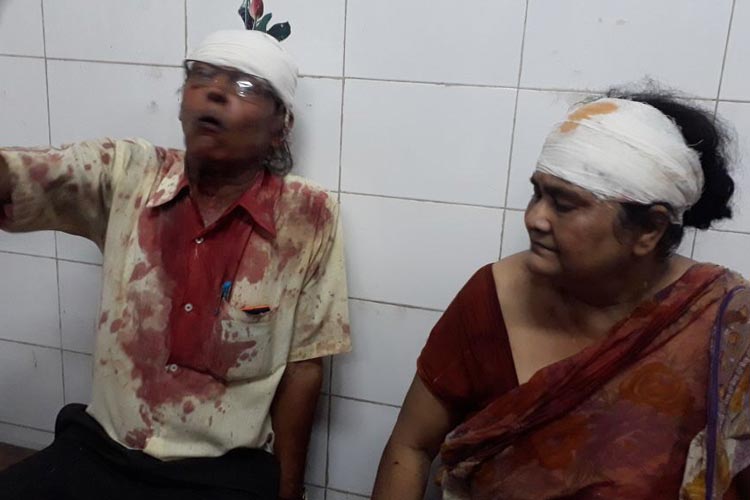 শুভলগ্নার আহত বাবা-মা। —নিজস্ব চিত্র।