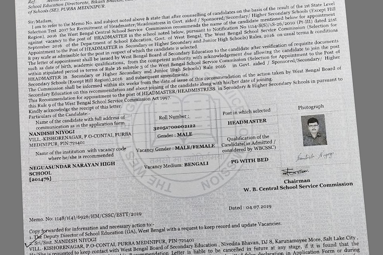 প্রধান শিক্ষক নিয়োগের রেকমেন্ডেশন লেটার। —নিজস্ব চিত্র।