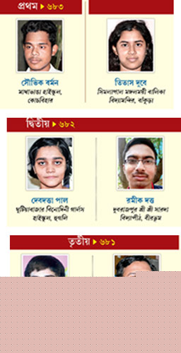 ৬৬৫ নম্বর পেয়েছে ভাতারের বামশোর হাইস্কুলের ছাত্র শেখ রাজু। বাবা স্থানীয় একটি লোহা কারখানায় দিনমজুরের কাজ করেন। খড় ছাওয়া মাটির ঘরে তিন ভাই, বাবা-মা মিলে পাঁচ জনের সংসার। ইংরেজি আর অঙ্কের জন্য গৃহশিক্ষক থাকলেও বাকি পড়াশোনা নিজেই করত রাজু। সাহায্য করত কলেজপড়ুয়া দাদা। রাজু সব বিষয়েই লেটার পেয়েছে। বড় হয়ে ইঞ্জিনিয়ার হতে চায়। আনন্দের মধ্যেও বাবা আমোদ আলি খরচের চিন্তায় ব্যস্ত। বললেন, ‘‘কী করে উচ্চ মাধ্যমিক পড়াব তাই ভাবছি।’’