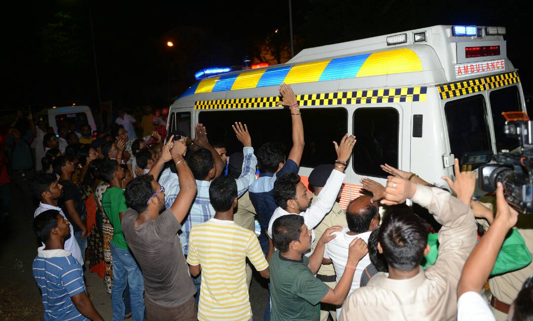 সুদীপ বন্দ্যোপাধ্যায়ের অ্যাম্বুলেন্স বেরিয়ে গেল কলকাতা বিমানবন্দর থেকে। হাজির হয়েছিলেন প্রচুর সমর্থক। ছবি: রণজিৎ নন্দী।