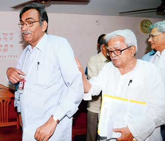 ও নারায়ণগড়ের প্রবীণ সিপিএম নেতা অনিল পাত্র (বাঁ দিকে)।—ফাইল চিত্র।