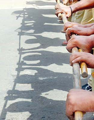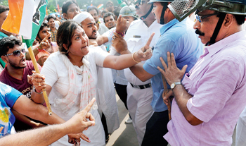 ডিজি থাকবেন না বলে জানানোর পরে অধীরদের দাবি ছিল, অন্য কোনও পুলিশ আধিকারিককে দাবিপত্র নিতে হবে। কিন্তু সেই আবেদনে সাড়া দিয়ে পুলিশের কেউ না আসায় অধীর এ দিন বলেন, ‘‘আমাদের স্মারকলিপি নিতে দিদি আপনার এত ভয় কীসের? আপনার কাছে কোনও উত্তর নেই বলেই স্মারকলিপি নিলেন না! এতে আমাদের নৈতিক জয় হল।’’ এর পরেই তাঁর ঘোষণা, ‘‘নবান্নে যাওয়ার অধিকার আমাদের নেই। কিন্তু আমরা নবান্নকে আমাদের কাছে নিয়ে আসতে চাই! আপনারা লাঠি, কাঁদানে গ্যাস খেতে রাজি? তা হলে চলুন পথ অবরোধ করি!’’ অধীরের নেতৃত্বে ডোরিনা ক্রসিংয়ের দিকে দৌড়নোর সময় কংগ্রেস কর্মীদের ধাক্কায় লুটিয়ে পড়ে পুলিশের কয়েকটি গার্ড রেল। মমতা বন্দ্যোপাধ্যায়ের জমানার প্রতীক হিসাবে নিয়ে-আসা রাবণের কুশপুতুল পোড়ানো হয়। গোটা কর্মসূচিতে উত্তেজনা বলতে ওইটুকুই। হাওড়ার ফোরশোর রোডের কোল ডিপো এবং সাঁতরাগাছিতে কোনা এক্সপ্রেসওয়ের হ্যাংস্যাং মোড়েও সভা হওয়ার পরে পুলিশ কংগ্রেস কর্মীদের গ্রেফতার করে। ঘটনাস্থলেই তাঁদের নিঃশর্ত জামিনে মুক্তিও দেওয়া হয়। আগের দিনের অভিযান থেকে শিক্ষা নিয়ে মাথায় হেলমেট-সহ পুলিশ রণসজ্জায় থাকলেও কোথাওই কোনও অশান্তি হয়নি।