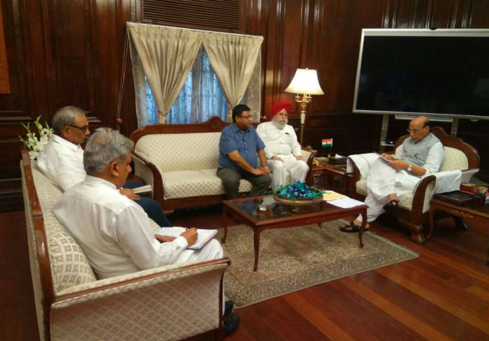 রাজনাথের সঙ্গে বৈঠকে রোশন গিরি। —নিজস্ব চিত্র।