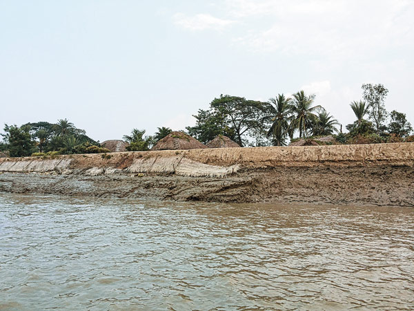 জলের সামান্য ঝাপটাতেও খসে পড়তে পারে এই মাটির বাঁধ।