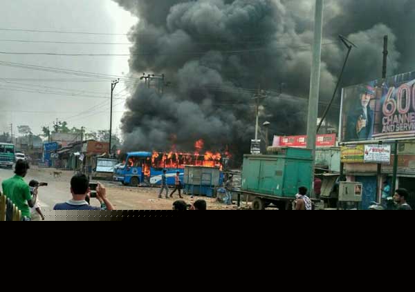 ফের জাতীয় সড়কে দুর্ঘটনা। পরীক্ষা দিতে যাওয়ার সময় বেপরোয়া লরির ধাক্কায় প্রাণ গেল এক স্কুল ছাত্রীর। আর সেই দুর্ঘটনাকে কেন্দ্র করেই শুক্রবার দুপুর দেড়টা নাগাদ রণক্ষেত্র হয়ে উঠল মুর্শিদাবাদের ফরাক্কার ৩৪ নম্বর জাতীয় সড়ক। পুলিশি নজরদারির অভাবকে তুলে ধরে একের পর এক বাস এবং লরিতে আগুন ধরিয়ে দেয় ক্ষুব্ধ জনতা। পরিস্থিতি এতটাই বেগতিক হয়ে ওঠে যে তা সামলাতে এসে বাঁশ, লাঠির তাড়া খেয়ে পালায় পুলিশ। জাতীয় সড়কের উপরে টানা আড়াই ঘণ্টা ধরে এই অগ্নিগর্ভ পরিস্থিতি বহাল থাকে। এখনও উত্তেজনা রয়েছে।