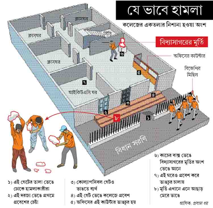 এ ভাবেই হামলা চালানো হয় বিদ্যাসাগর কলেজে।