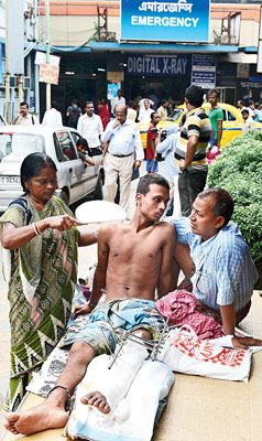 এসএসকেএম। মোটরবাইক দুর্ঘটনায় ছেলেটার গোটা শরীরে চোট।