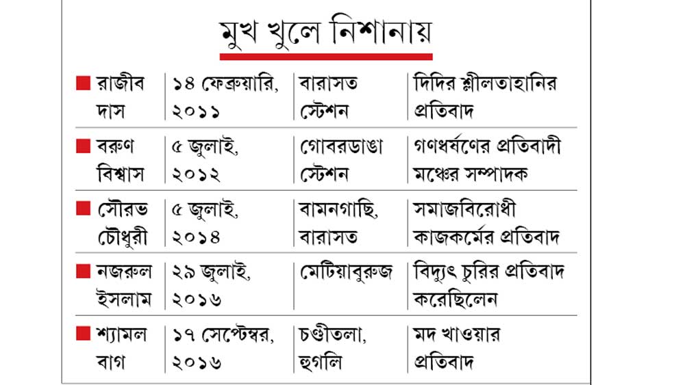 বাড়ির সামনের রাস্তায় প্রকাশ্যে মদের আসর বসত। প্রতিবাদ করেছিলেন টিটাগড় উড়নপাড়ার কলেজ ছাত্র মহম্মদ তৌফিক (২১)। তার জেরে মারধর করা হয়েছিল তাঁকে। জুটেছিল প্রাণনাশের হুমকিও। শুক্রবার রাতে সেই তৌফিককে তাঁর বাড়ির সামনে গুলি করে খুন করল দুষ্কৃতীরা। অভিযোগ, যারা খুনের হুমকি দিয়েছিল, তারাই গুলি করে তৌফিককে। পুলিশ দুই অভিযুক্তকে রাতেই গ্রেফতার করে। এক অভিযুক্ত পলাতক। এ ভাবে প্রকাশ্য রাস্তায় গুলি করে খুনের ঘটনায় আতঙ্ক ছড়িয়েছে এলাকায়।