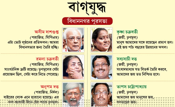 দিয়ে পুরভোটে সাত হাজারেরও বেশি ভোটে জয়ী হয়ে বাজিমাত করেছেন তাপসবাবু। তিনি দীর্ঘদিন রাজারহাট পুরসভার চেয়ারম্যানও ছিলেন। এই সূত্রেই আলোচনায় উঠে আসছে তাপসবাবুর সঙ্গে সব্যসাচীর দীর্ঘদিনের গোষ্ঠীবিরোধের প্রসঙ্গ। সিন্ডিকেট ব্যবসা থেকে শুরু করে এলাকা দখলের রাজনীতিতে সেই গোষ্ঠীবিরোধ প্রকাশ্যে চলে এসেছে বারবার। একাধিক সংঘর্ষও ঘটেছে গত কয়েক বছরে। পরিস্থিতি এমন পর্যায়ে গিয়েছে যে, পুরভোটের ঠিক আগে বিধানসভায় তাঁর কক্ষে দলের শীর্ষ নেতাদের উপস্থিতিতে তাপস, সব্যসাচী এবং তাপস-ঘনিষ্ঠ বিধাননগরের বিধায়ক সুজিত বসুকে নিয়ে বৈঠক করতে হয়েছিল দলের শীর্ষ নেত্রী মমতা বন্দ্যোপাধ্যায়কে। কারণ তাঁর আশঙ্কা ছিল, পুরভোটে গোষ্ঠীদ্বন্দ্ব প্রকাশ্যে চলে এলে তা দলের ভাবমূর্তি ম্লান করতে পারে। তার প্রভাব পড়তে পারে ২০১৬-র বিধানসভা ভোটে।