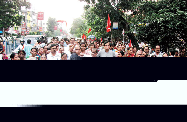 বালাসন কলোনির ঘটনার প্রতিবাদে শিলিগুড়ির হিলকার্ট রোডে সিপিএমের মিছিল।