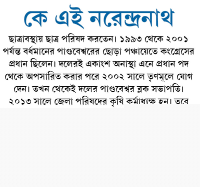 রবিবার ধরা পড়ার পরে নরেনবাবু দাবি করেছিলেন, ‘‘আমি অত্যন্ত ভাল লোক।’’ পাণ্ডবেশ্বরের তৃণমূল নেতা-কর্মীদের একাংশ অবশ্য অন্য কথা বলছেন। তাঁদের দাবি, নরেনবাবুর অতীত নিয়ে অনেক প্রশ্নই আছে। অভিযোগ, নিজের দলের অন্য গোষ্ঠীর লোকজনকে মারধরেও বারবার নাম জড়িয়েছে তাঁর। নিজে খনিকর্মী হলেও নানা দাবিতে বিভিন্ন কোলিয়ারির কাজে বাধা দিয়েছেন। ২০১২-য় পুলিশকে লক্ষ করে গুলি ছোড়ার অভিযোগও উঠেছিল তাঁর বিরুদ্ধে।