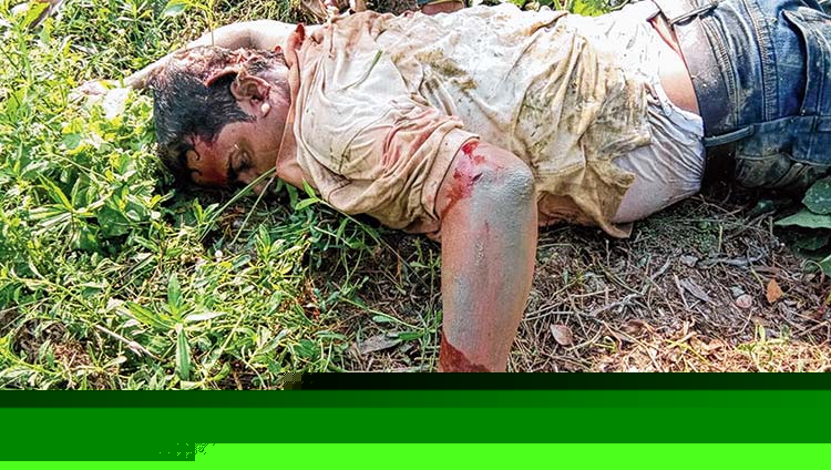 রক্তাক্ত: জলাজমিতে পড়ে তৃণমূলের উপ-প্রধান নান্টু প্রধানের দেহ।