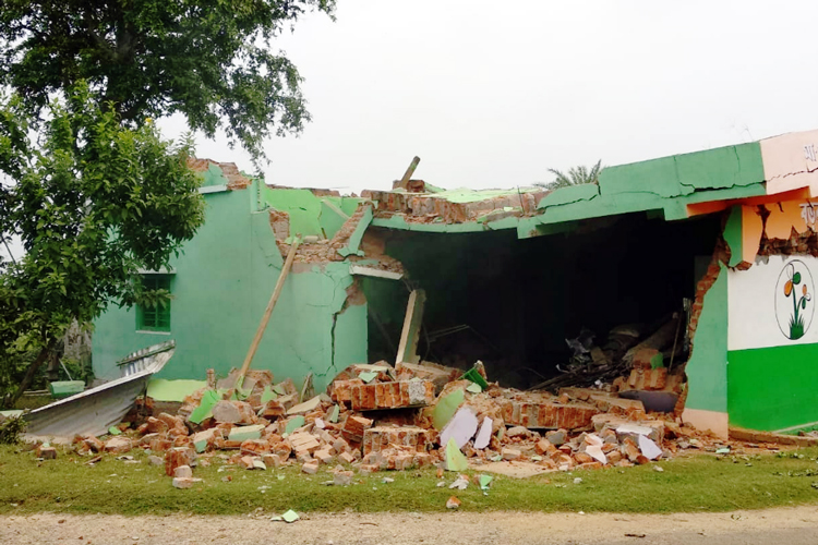 কার্যত ধ্বংসস্তূপে পরিণত হয়েছে বড়বায় তৃণমূলের পার্টি অফিস।—নিজস্ব চিত্র।