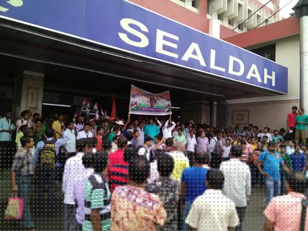 শিয়ালদহ স্টেশন থেকে ধর্মতলার উদ্দেশে তৃণমূলের মিছিল।