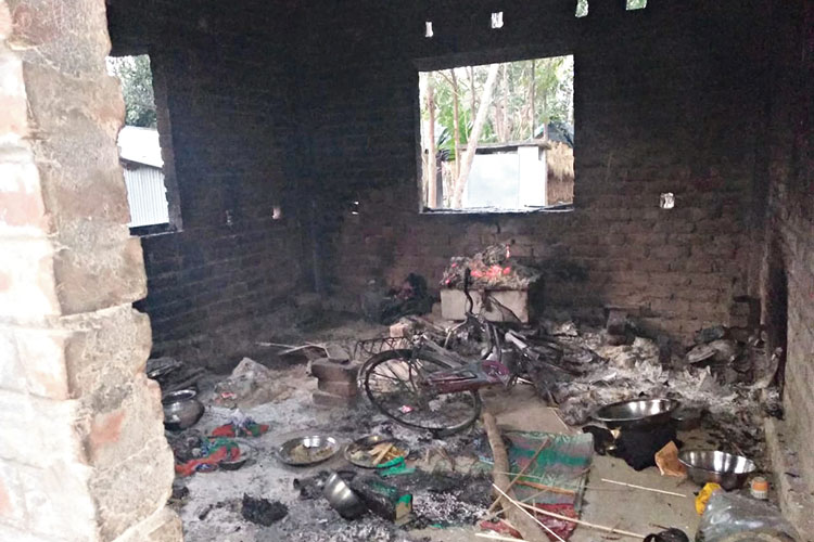 পুড়িয়ে দেওয়া হয়েছে অভিযুক্তের বাড়ি। নিজস্ব চিত্র