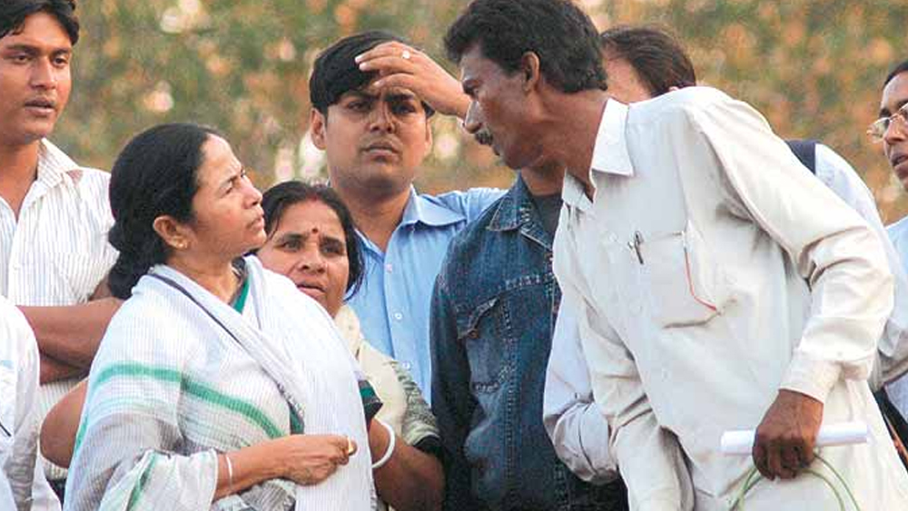 মমতা বন্দ্যোপাধ্যায় ও ছত্রধর মাহাতো, ২০০৯ সালে জঙ্গল মহলে। ফাইল চিত্র।