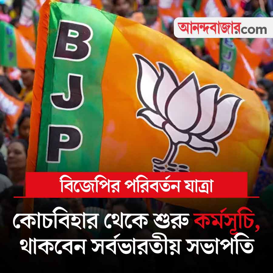 রাজ্য জুড়ে বিজেপির ‘পরিবর্তন যাত্রা’ শুরু আজ। পর পর দু’দিনে সর্বভারতীয় পরিচিতির ন’জন ‘ওজনদার’ নেতা-মন্ত্রী পশ্চিমবঙ্গ সফরে আসছেন রাজ্যের ন’টি প্রান্ত থেকে ‘যাত্রা’র উদ্বোধন করতে। পশ্চিমবঙ্গ বিজেপির ইতিহাসে এমন কর্মসূচি বেনজির। রাজ্যে ‘অপশাসন’ সংক্রান্ত কোন কোন বিষয়ের প্রতিবাদে এই কর্মসূচির ডাক দেওয়া হয়েছে, তা বিজেপি নেতারা একাধিক বার বলেছিলেন। এই কর্মসূচির মাধ্যমে বিজেপি কী ভাবে তৃণমূলকে সরাতে ‘ইচ্ছুক’ রাজ্যবাসীর মনোবল বাড়াতে চায়, সে কথাও আগেই বলা হয়েছিল। আজ কোচবিহারে আসছেন বিজেপির সর্বভারতীয় সভাপতি নিতিন নবীন। দুপুর ২টোর সময় তিনি কোচবিহার বিমানবন্দরে হেলিকপ্টারে অবতরণ করবেন। এর পর কোচবিহার রাসমেলা ময়দানে পরিবর্তন যাত্রার শুভ সূচনা করবেন তিনি। উপস্থিত থাকবেন রাজ্য সভাপতি শমীক ভট্টাচার্য, ফালাকাটার বিধায়ক দীপক বর্মণ, প্রাক্তন কেন্দ্রীয় মন্ত্রী নিশীথ প্রামাণিক-সহ জেলা নেতৃত্ব।